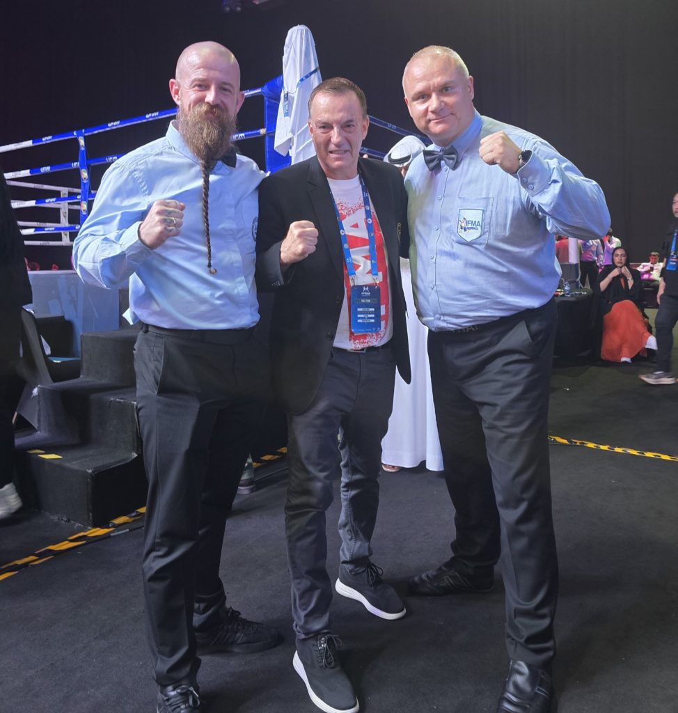 Miłym akcentem Mistrzostw było spotkanie z Panem Grzegorzem Gawinem, Ambasadorem RP w Abu Zabi podczas Młodzieżowych Mistrzostw Świata IFMA 2025. Dziękujemy Panu Ambasadorowi za odwiedziny Reprezentacji Polski Muaythai.