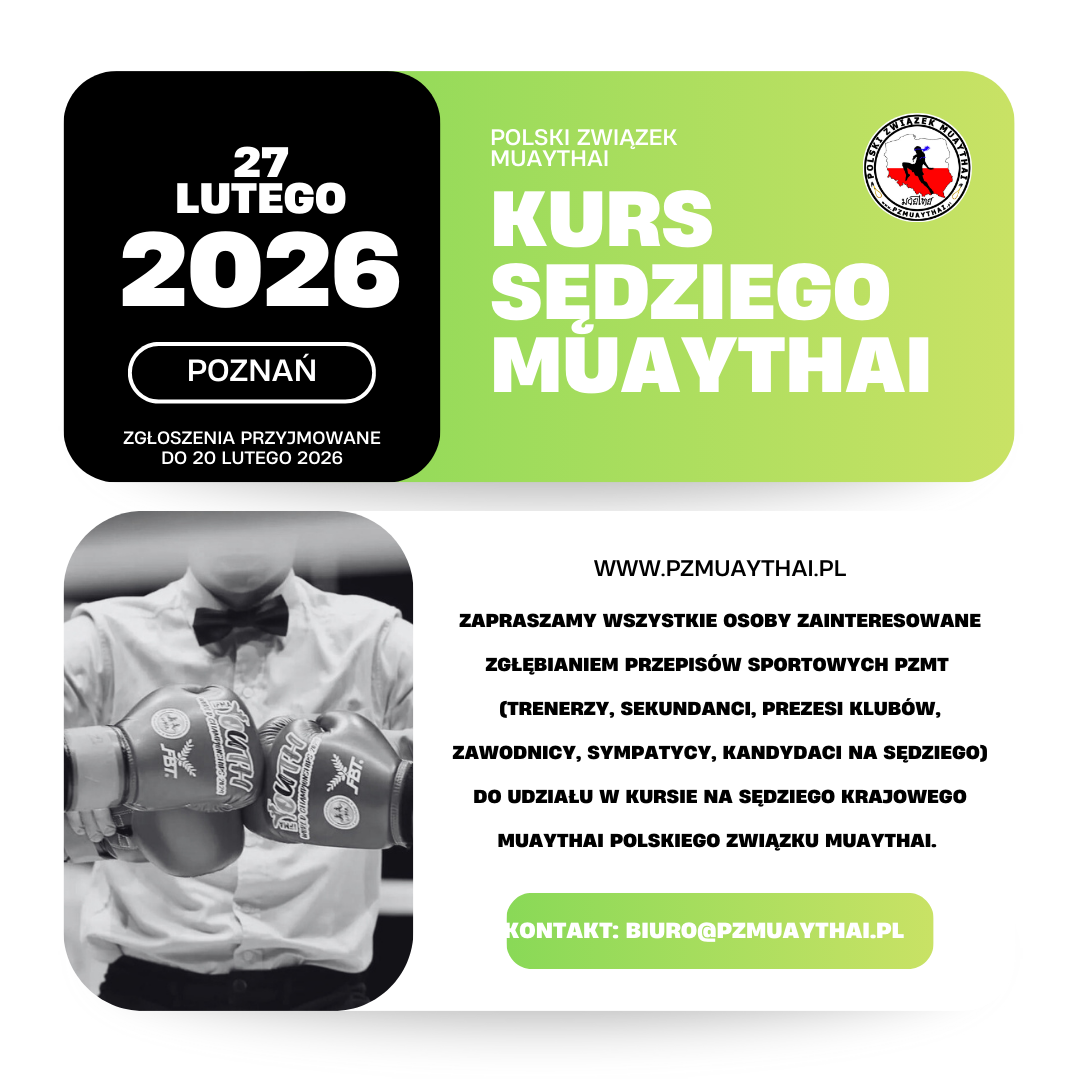 Zapraszamy wszystkie osoby zainteresowane zgłębianiem przepisów sportowych PZMT (trenerzy, sekundanci, prezesi klubów, zawodnicy, sympatycy, kandydaci na sędziego) do udziału w kursie na Sędziego krajowego Muaythai Polskiego Związku Muaythai.